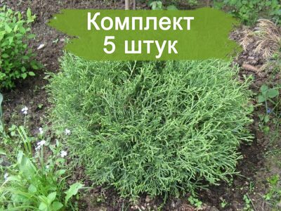 Набор из пяти туй сорта Мистер Боулинг Болл (Mr. Bowling Ball) предлагается по привлекательной цене, где пятая туя идет в подарок. Эти растения обладают компактными размерами, начиная от 20-30 см в диаметре, и в процессе роста могут достигнуть до 90 см в ширину при высоте около 0,6-0,7 м. Отличительной чертой данного вида является его карликовость и способность сохранять насыщенный цвет листвы круглый год.
