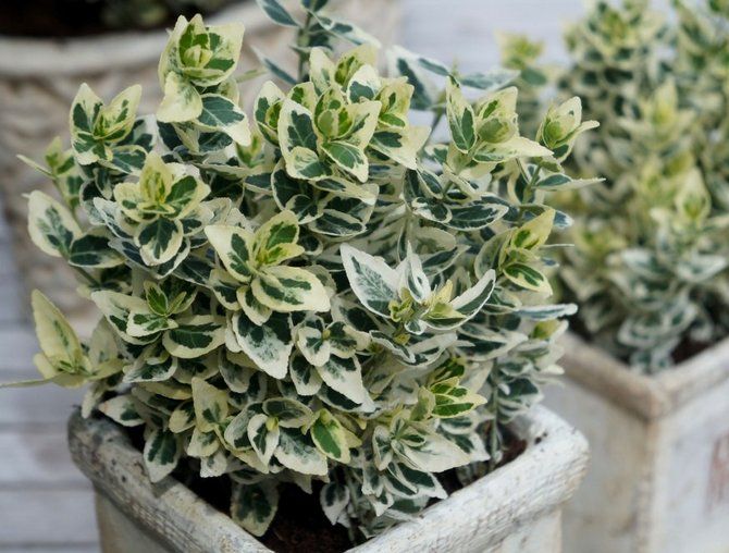 Бересклет Форчуна Emerald Gaiety – это компактное растение, достигающее высоты всего 25 см. Однако, при наличии опоры, оно способно вытянуться до 2 метров. Листья округлой формы, кожистые, с тёмно-зелёной серединой, переходящей в мраморный оттенок, и обрамлены белой каймой. В июне-июле Эмеральд Гайети цветет мелкими зелено-желтыми цветочками, которые не привлекают особого внимания.