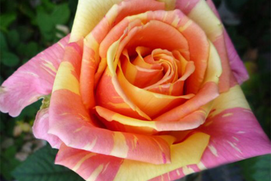 Роза «Фиеста» – это уникальный сорт французской селекции, который привлекает внимание своей необычной градиентной окраской. Цветы этого сорта переходят от молочно-желтого к нежно-розовому, с лимонными и кремовыми полосками, создавая эффектный и запоминающийся вид. Распустившиеся цветы имеют ромбовидную форму, что придает им особую изысканность. С расстояния роза может казаться одноцветной, что добавляет ей дополнительного шарма. Благодаря красивым молочным переходам, этот сорт часто называют «карамельной розой».