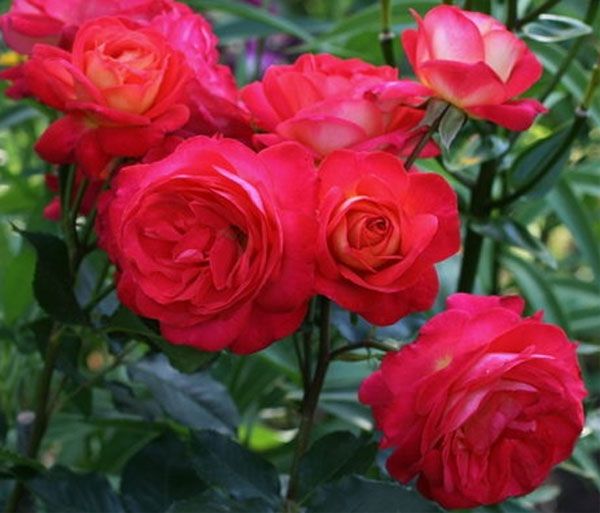 Теперь о достоинствах. Каждый цветок по отдельности выглядит великолепно. Форма цветков классическая, чайно-гибридная, с ярким, но пастельным оттенком на внешней стороне лепестков. Аромат у цветов практически отсутствует. Кусты достигают высоты до метра и более, с прямостоячими побегами. Листва крупная, блестящая, насыщенно-зеленого цвета. Кусты отличаются высокой устойчивостью к болезням и остаются здоровыми даже в сложные годы.